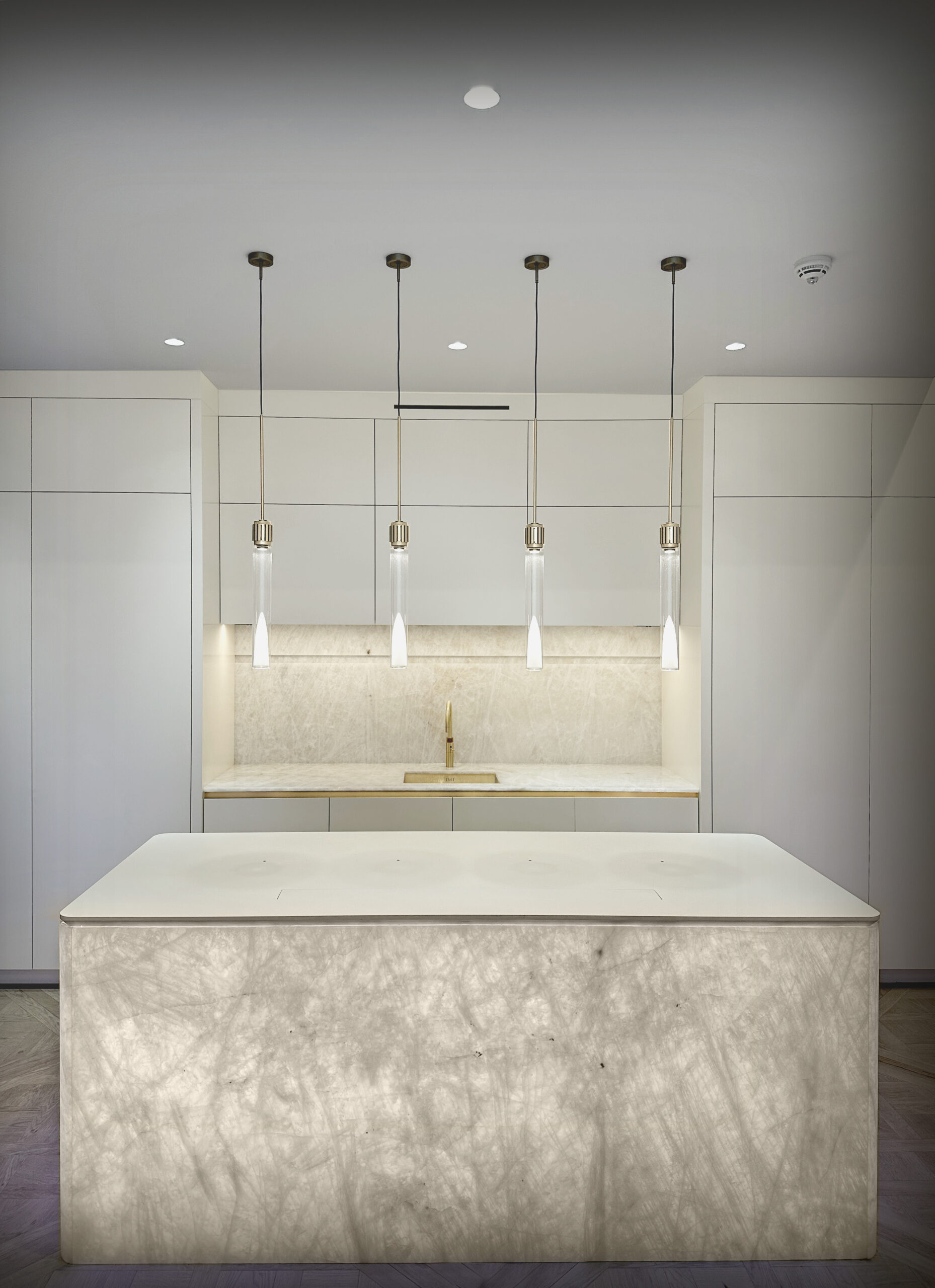 The technical requirements are exacting. The stone must be cut to the right thickness — thin enough to transmit light, strong enough to bear use. The LED specification must produce the right colour temperature and be fully dimmable. The joinery must conceal the light source entirely. T&V Architects manages all of this within the furniture design, so the finished result looks effortless.