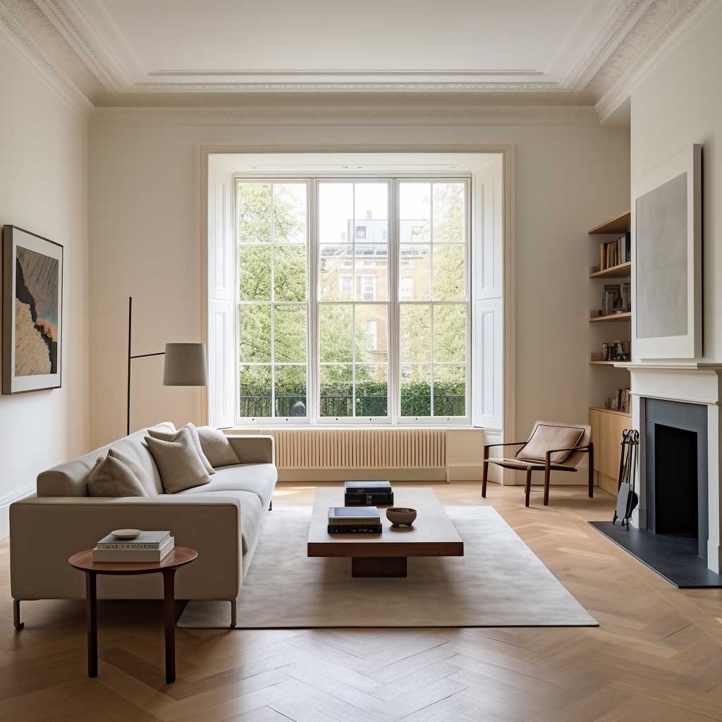 London’s residential architecture spans Georgian symmetry, Victorian exuberance, Edwardian solidity, and post-war modernism. Each period has its own proportional logic, its own relationship between walls and openings, its own sense of what a room should feel like. Furniture that ignores this context rarely succeeds.