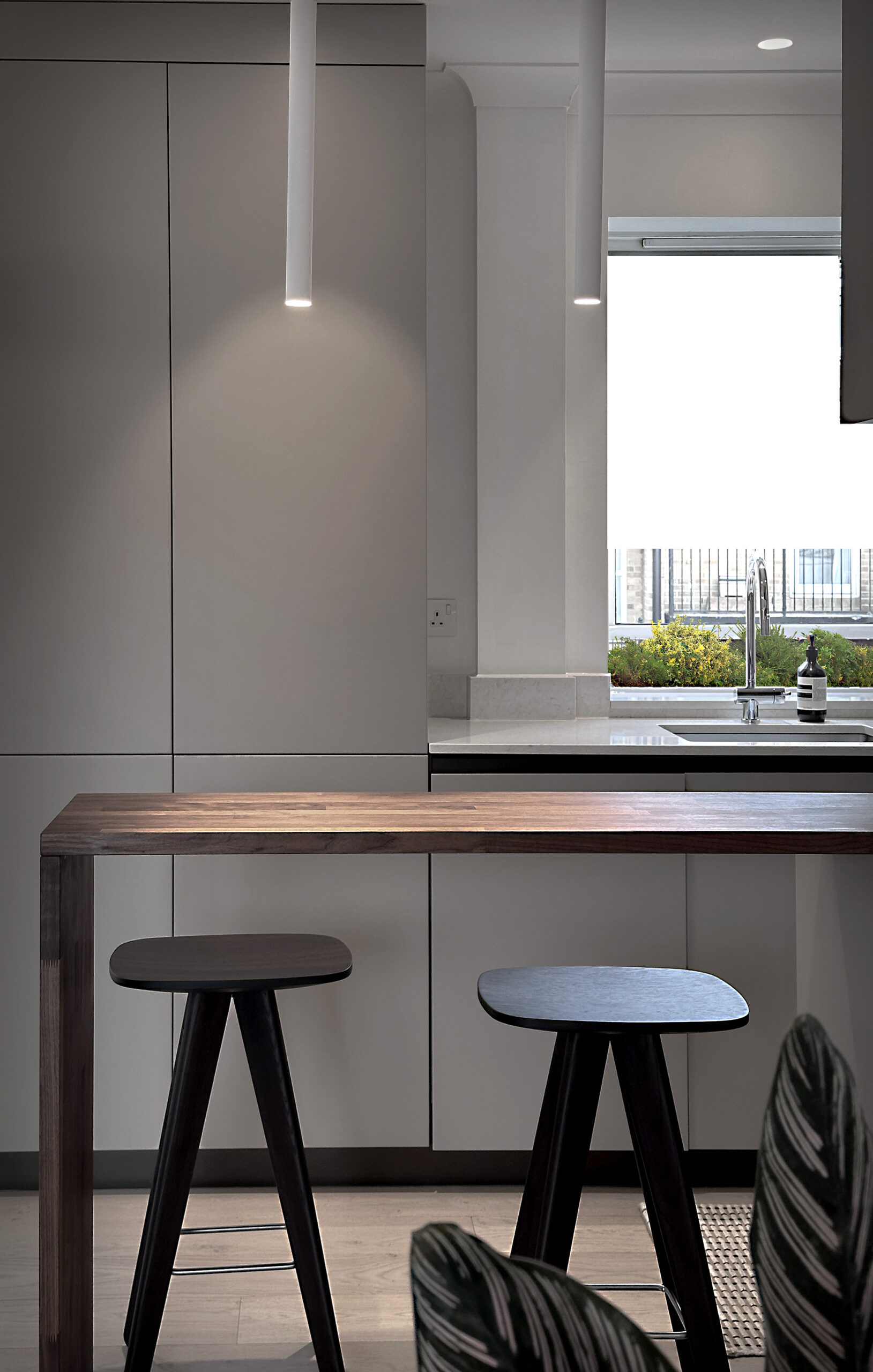 These utility areas use the same materials, the same joinery details, the same design language as the main kitchen. The result is a cohesive transition from the city to the home. You’re not moving between different design schemes. You’re moving through a single, carefully considered architectural experience.