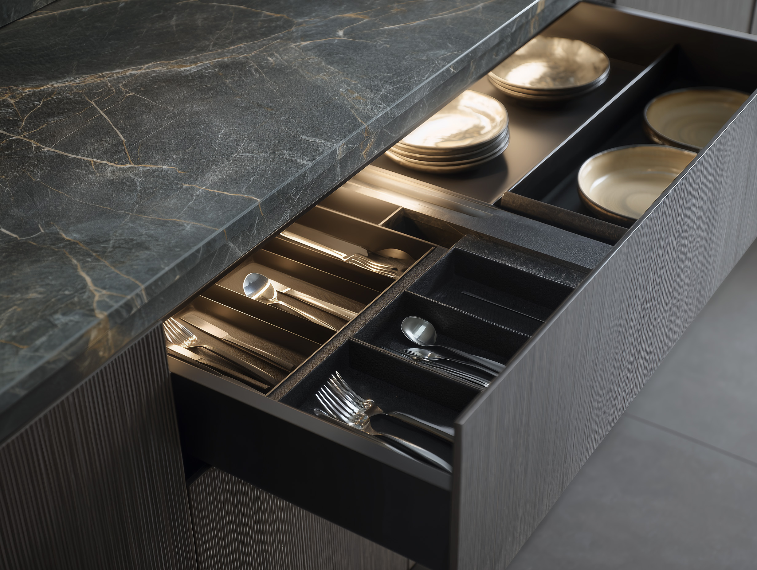 Our solution: hidden intelligence through concealed storage. Clutter isn’t a failure of discipline. It’s a design challenge. We design “disappearing” storage solutions that allow the kitchen to transform effortlessly from utility to entertaining mode.