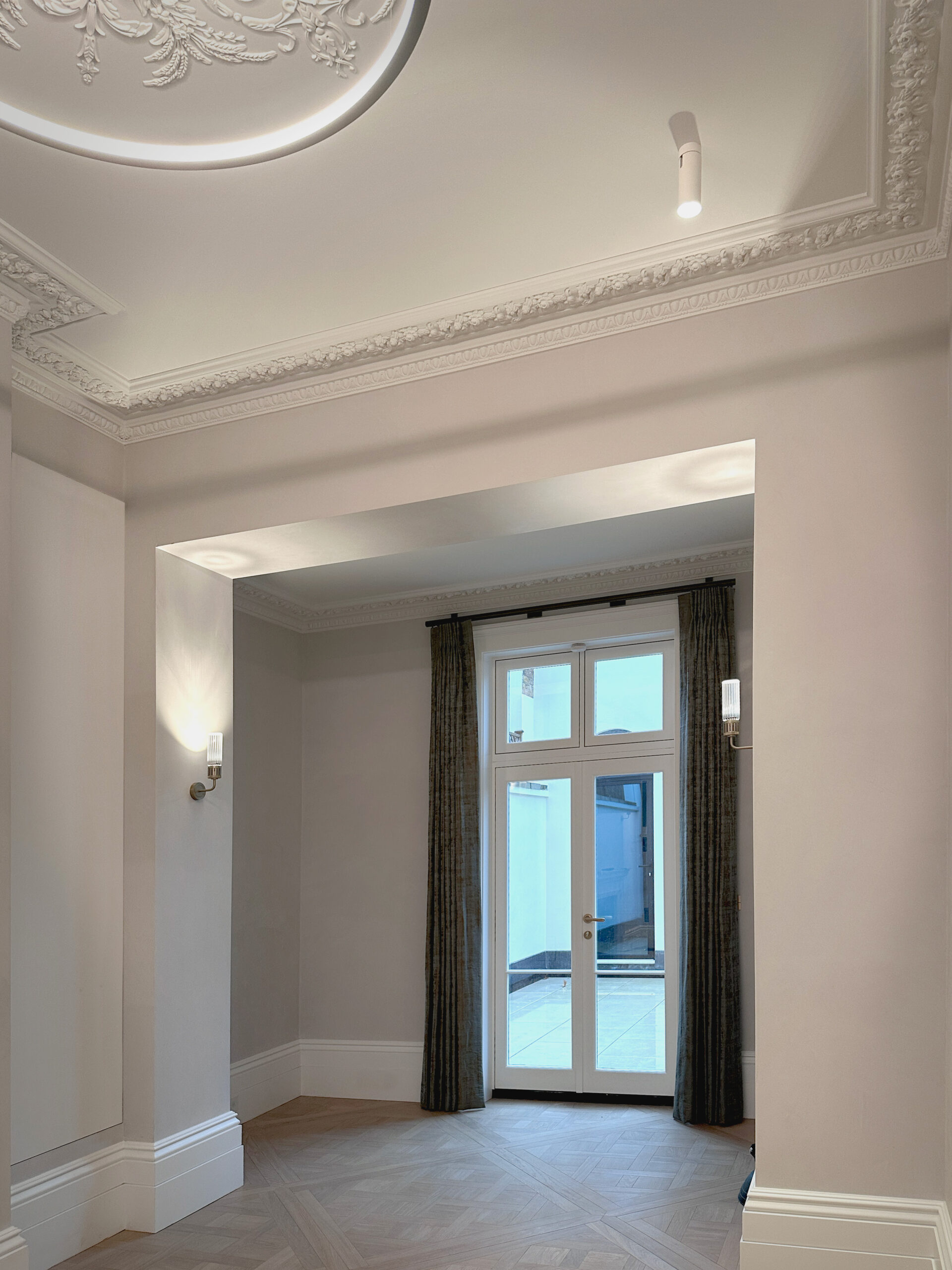 T&V Architects has significant experience working in Grade I and Grade II listed buildings across Westminster, Kensington, and Camden. We understand what conservation officers expect and how to design lighting interventions that are fully reversible, sympathetic to historic fabric, and still deliver the performance a modern occupant requires.