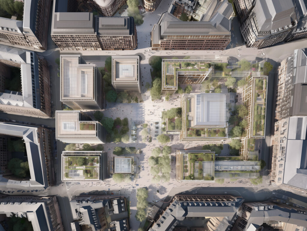 The master plan for One Embankment Place was conceived as a piece of urban infrastructure as much as a workplace. T&V Architects organised the complex around a generous public realm — a sequence of landscaped courts and active frontages that animate the surrounding streets while providing the campus with a coherent civic identity.